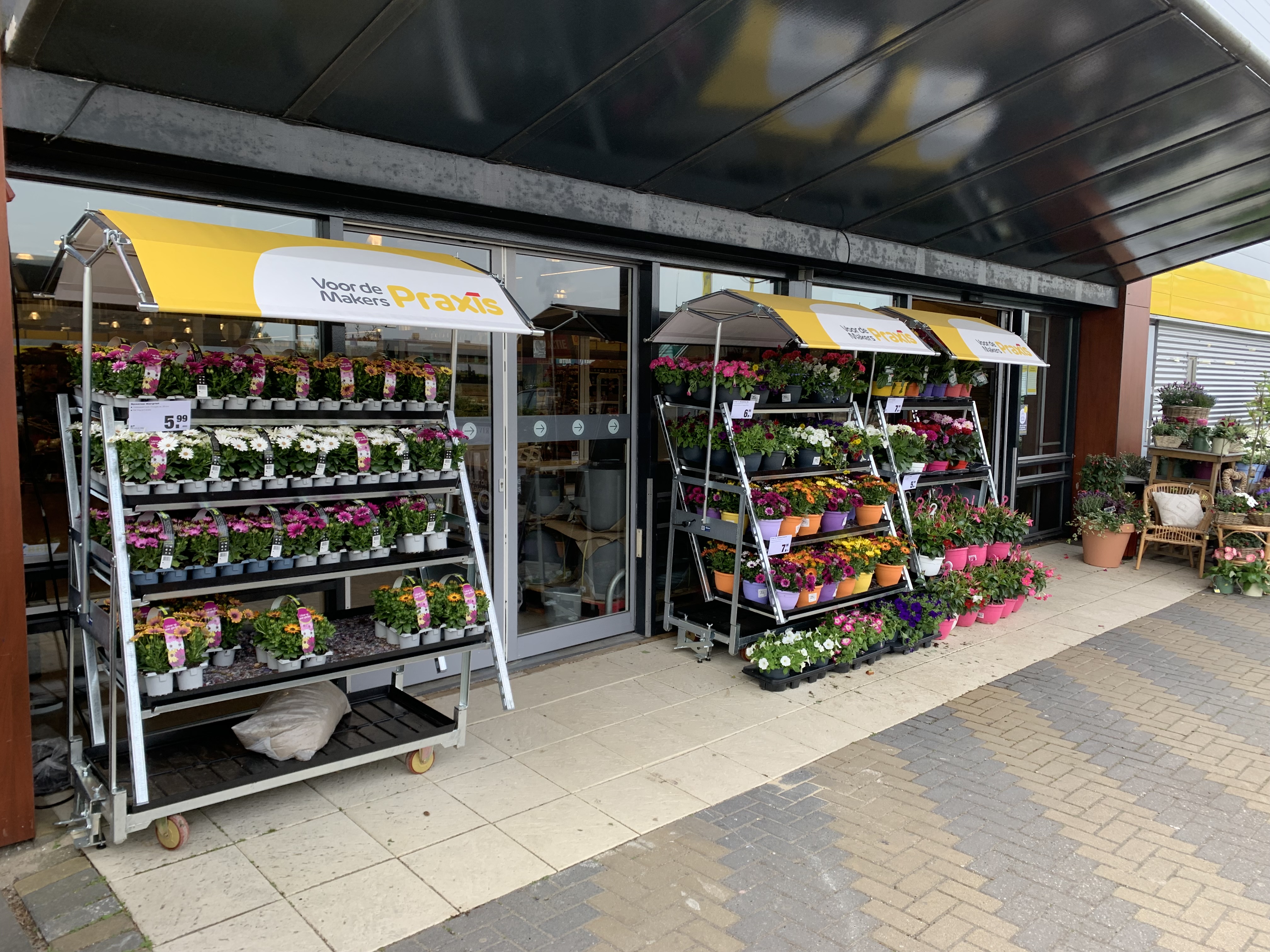 Praxis, l'un des principaux magasins de bricolage des Pays-Bas, vend également depuis des années un volume croissant de plantes à massif, d'annuelles d'été et de plantes vivaces. Ici aussi, notre Horti-Display, avec le toit en style maison, offre une valeur ajoutée en termes de présentation et donc plus de ventes, ainsi qu'une meilleure qualité de plantes au moment de la vente et finalement dans la maison du client.