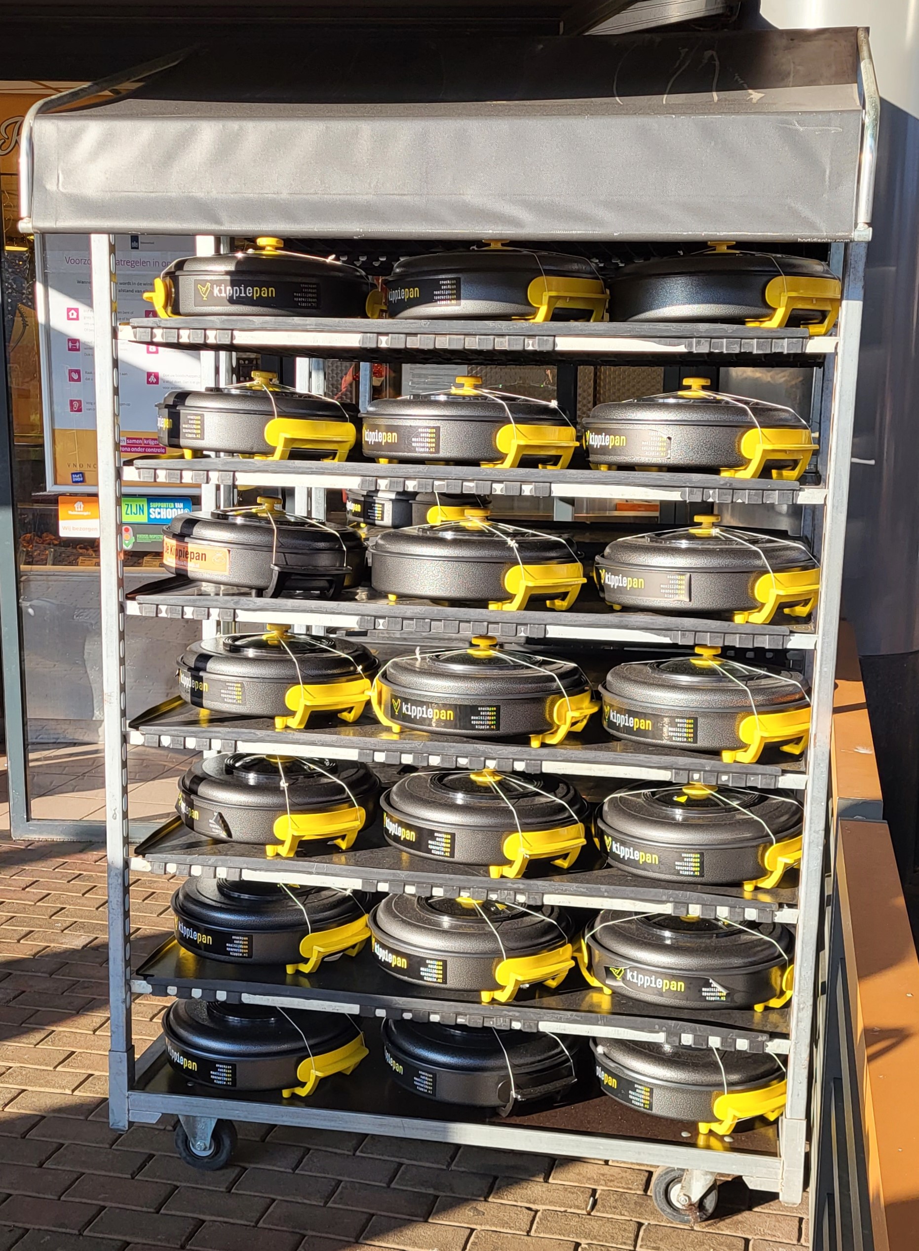 Dans un magasin Kippie, nous avons trouvé un autre bel exemple de chariot danois en tant qu'outil de présentation : un chariot contenant des bacs Kippie (vides) et surmonté d'un Horti-Roof, l'un des systèmes de toiture de notre gamme. Le chariot est équipé de nos bâches plastiques robustes et hygiéniques. Ces feuilles ont une plus grande capacité de charge, sont lavables et leur surface lisse empêche les bactéries et les champignons de s'y installer.