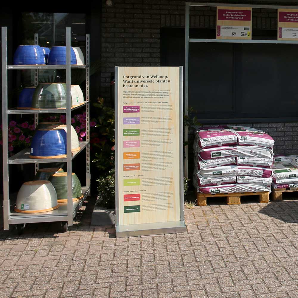 Welkoop, une chaîne néerlandaise comptant plus de 150 succursales, est connue pour son large éventail de plantes de haute qualité. Depuis de nombreuses années, nous travaillons ensemble sur des idées visant à créer un environnement plus attrayant et plus stimulant pour présenter ces produits.