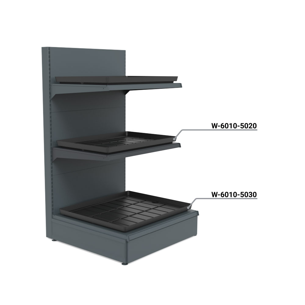 Ce bac à eau noir est spécialement conçu pour les étagères de Wanzl, entre autres. Grâce à ce bac, vous pouvez transformer en un rien de temps votre étagère murale ou gondole en un présentoir (temporaire) pour fleurs et plantes, sans devoir utiliser d'autres matériaux.
